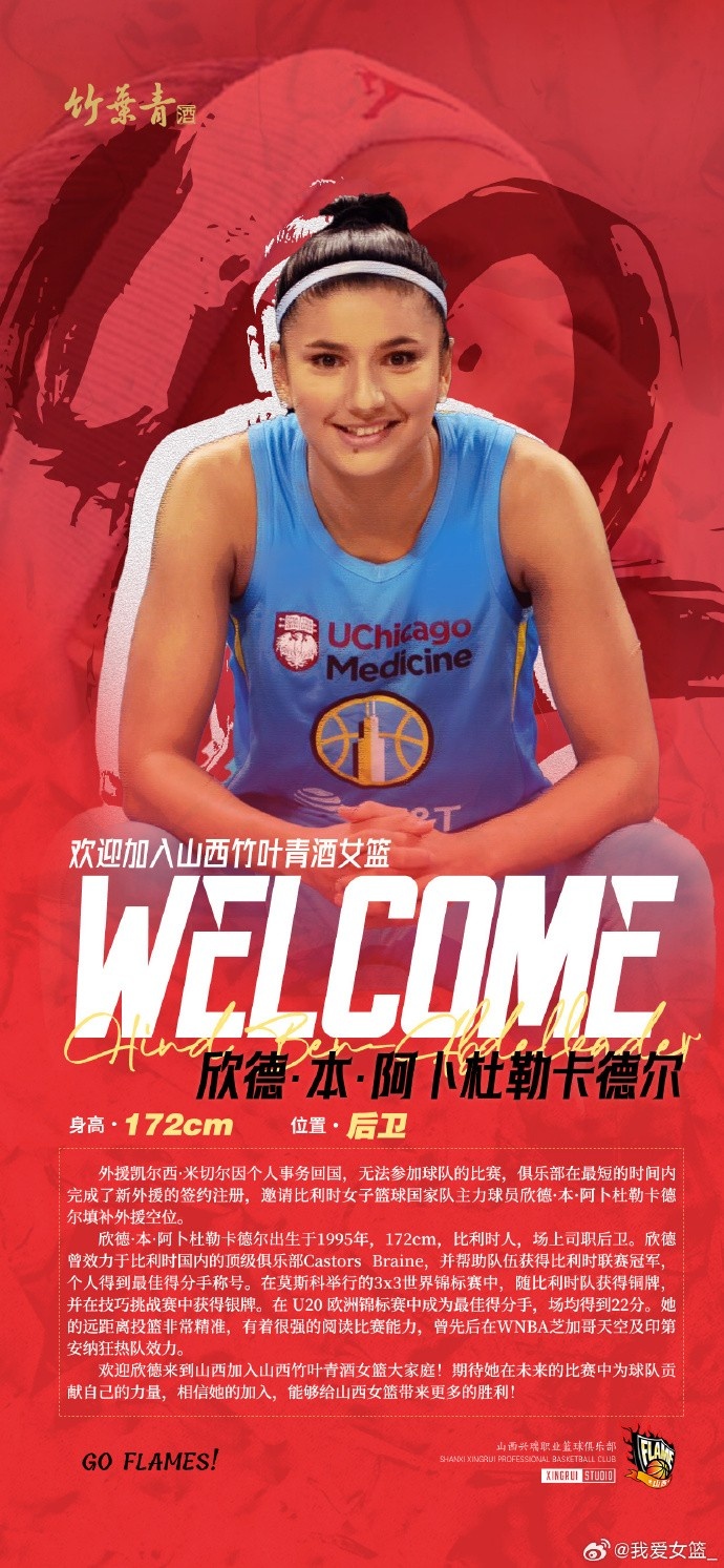 山西女篮官方介绍:外援凯尔西-米切尔因个人事务回国,无法参加球队的比赛,俱乐部在最短的时间内完成了新外援的签约注册,邀请比利时女子篮球国家队主力球员欣德-本-阿卜杜勒卡德尔填补外援空位。
