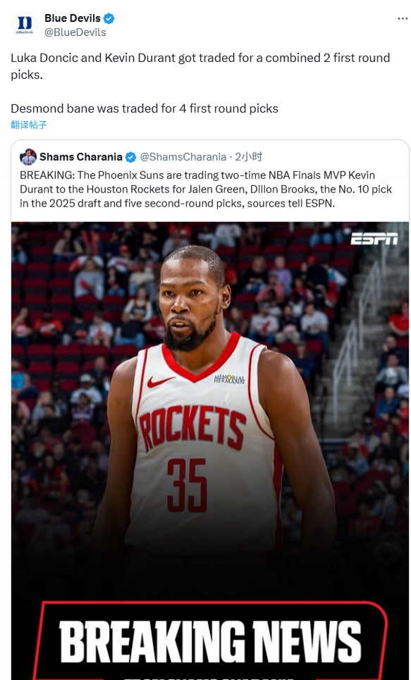 扎心了网友:东契奇&杜兰特一共才换2个首轮 贝恩换了4个首轮