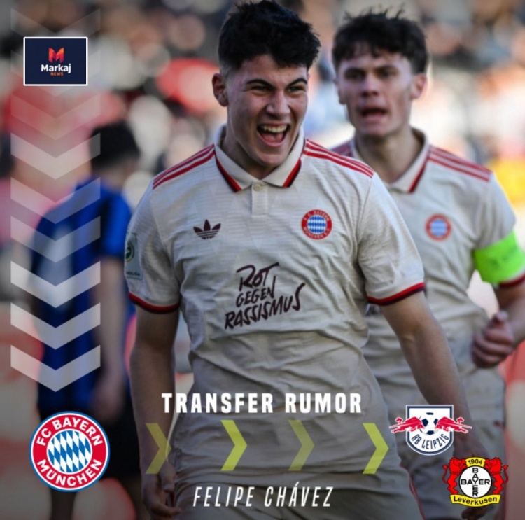 4月11日讯 《图片报》报道,莱比锡、勒沃库森在内的多支球队在密切关注拜仁18岁进攻型中场费利佩-查韦斯。