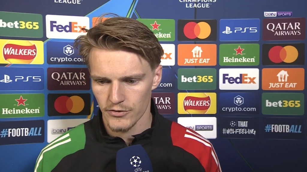 厄德高:“每个人今天都对比赛结果感到失望,我们今天本想赢球,也想在某些方面做得更好。但这只是半场,我们还有一回合比赛。我们必须分析今天的表现,从中吸取教训,确保我们能加满油迎战次回合的较量,坚信我们能够扭转局面,这是我们的目标。