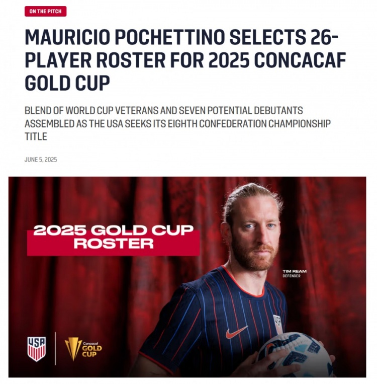 2025年金杯赛,美国与海地、特立尼达和多巴哥以及受邀参赛的沙特同组,在此之前美国队还将在友谊赛中先后对阵土耳其以及瑞士。
